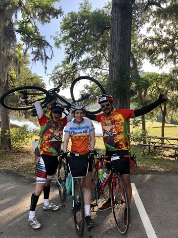 What an exhilarating weekend! I am so proud and fortunate to have been a part of it. I didn't know if I'd ever make it through those Bastrop hills, but somehow I did and it is thrilling to be at the finish line. I want to thank the National MS Society, the Tacodeli team who took me in at the last minute, my friends who donated, my family who came out to support me and have been a critical part of my MS journey. Most of all i want to thank my cousin Bates and my new friend Cesar who drove all the way from El Paso to be my cheerleaders and companions on the awesome adventure we had this weekend.